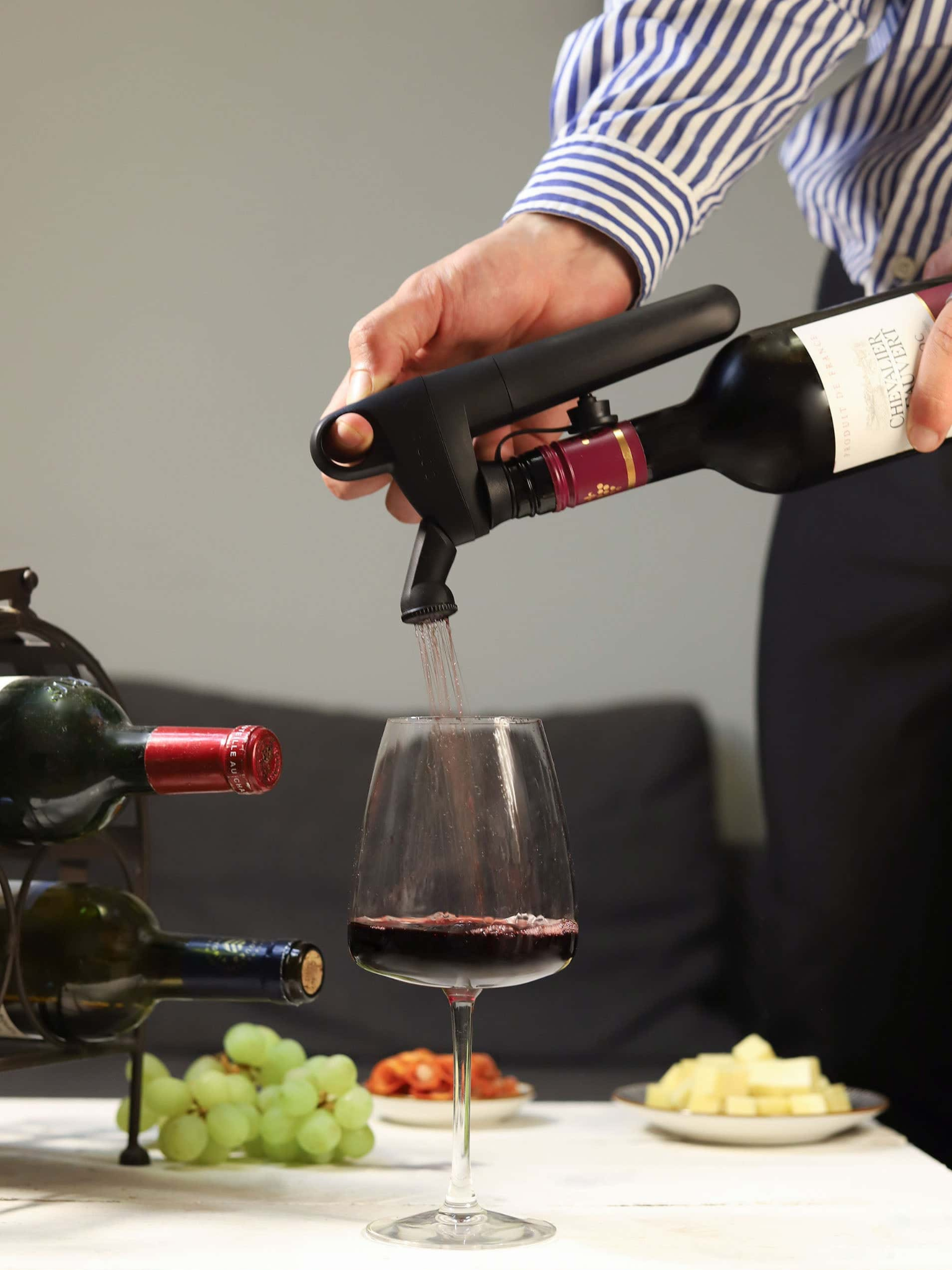 L'aérateur Pivot™, conçu pour être utilisé avec les systèmes de préservation du vin Pivot, est l'accessoire idéal pour obtenir un vin plus aromatique et plus savoureux en quelques secondes. Cet accessoire unique aère rapidement le vin au fur et à mesure que vous le versez, donnant des résultats soyeux, doux et aromatiques équivalents à une décantation de 60 à 90 minutes. Non compatible avec les systèmes de préservation du vin Timeless Coravin (ceux qui utilisent une aiguille pour percer le bouchon).
