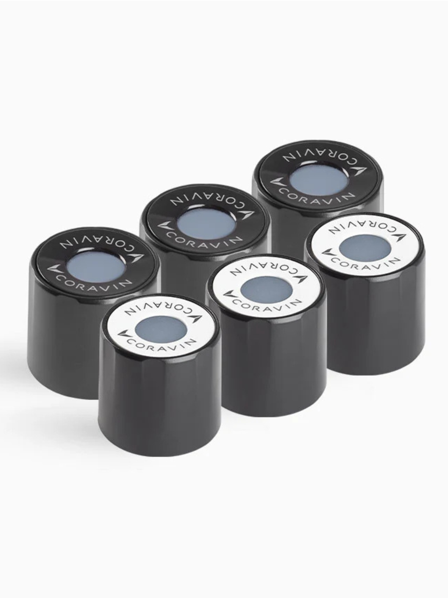 Ce coffret comprend les Coravin Screw Caps en deux tailles : 3 Standard (compatibles avec la plupart des bouteilles à bouchon à vis) et 3 Large.