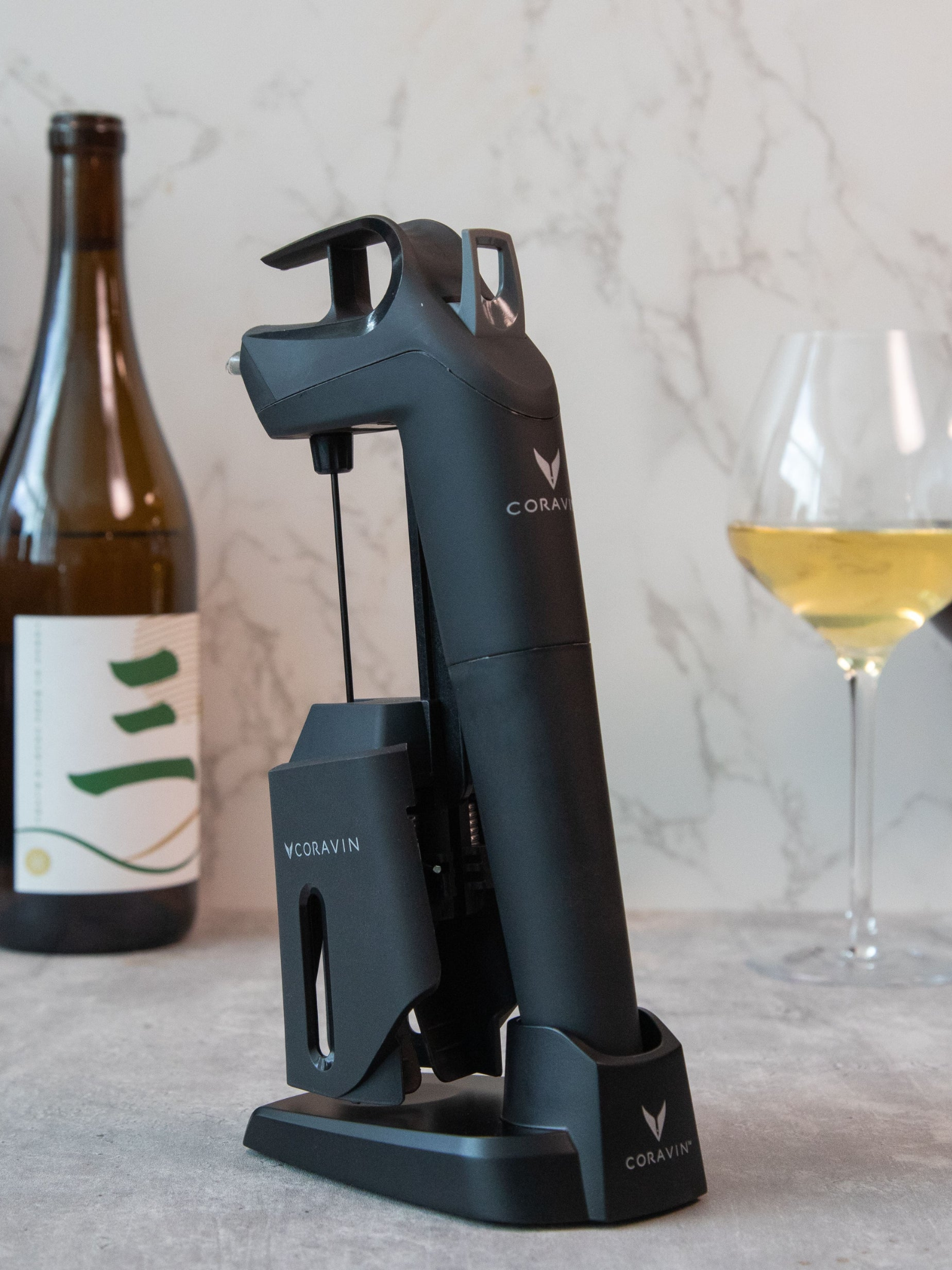 Sa finition noire mate et ses lignes sculptées offrent une présentation élégante de votre système Coravin.